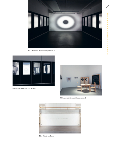 03 / Ansicht Ausstellungsraum 2 E X A M E N S A U S S T E L L U N G E N 221 04 / Detailansicht aus Bild 03 05 / Ansicht Ausstellungsraum 3 06 / Wand im Foyer