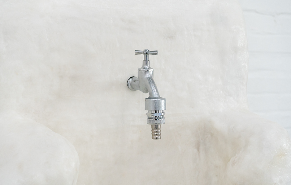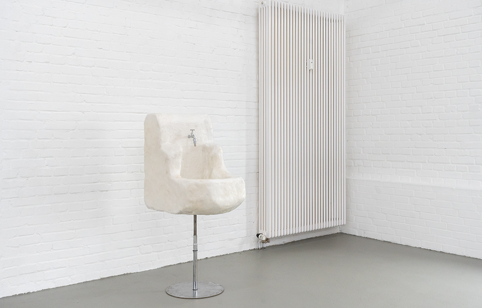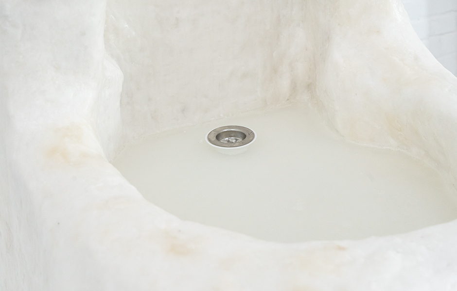 „In der prämierten Arbeit kollidieren unterschiedliche bildhauerische Logiken miteinander und verdichten sich zu einem vertraut wirkenden und dennoch irritierenden Objekt. Ein schweres Waschbecken mit dicken Wandungen aus grob gehauenem Marmor balanciert auf einem schmalen Metallfuß - so scheint es zumindest auf den ersten Blick. Erst bei näherer Betrachtung erschließt sich, dass dieses Becken sorg-fältig und in vielen Schichten von Hand aus Wachs geformt wurde. Mit Seife gefüllt und mit industriellen Bauteilen wie Wasserhahn oder Ablauf kombiniert, trotzt es seinen widersprüchlichen Objekteigenschaften. Gerade in dieser Spannung entfaltet die Arbeit ihre Wirkung: Das Becken erscheint gebrauchsfähig, könnte sich aber im Moment der Nutzung auflösen. Zwischen Funktion und Dysfunktion, zwischen Skulptur, Möbel und Infrastruktur eines Gebäudes stellt es leise Fragen nach dem Material des Alltags. Zugleich rückt das Werk den Körper und seine Routinen in den Blick - das Säubern, Versorgen, den alltäglichen Gebrauch von Dingen, die hier fragil werden und ihre Selbstverständlichkeit verlieren. Hingabe in Form lässt offen, wer sich hier wem hingibt - und in welchem Moment das Nützliche ins Ungewisse kippt. Für diese kluge und sinnliche Arbeit erhält Yuna Jeong den Förderpreis der Freunde der Kunstakademie Münster.“